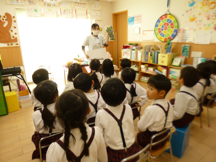 先日調理さんが食育をしてくれました。小松菜とほうれん草の違いをみんなで学びました。クラス概要