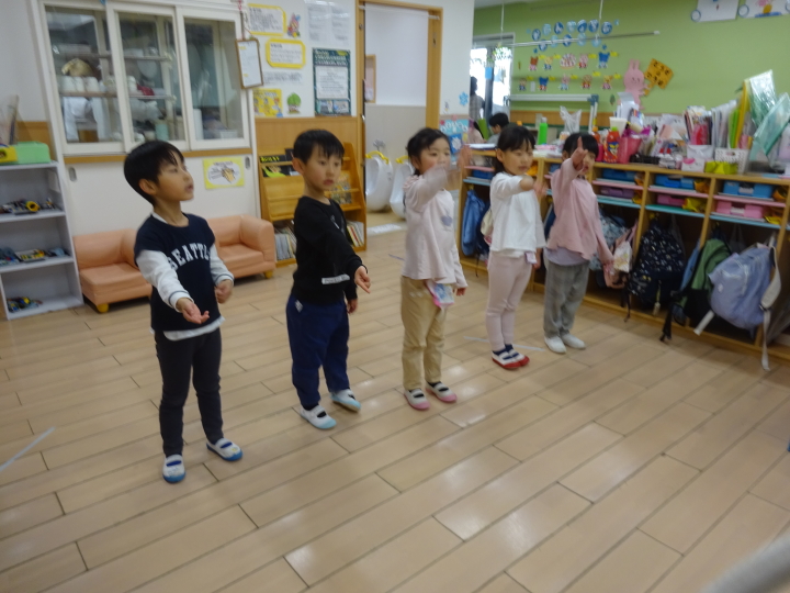 発表会の練習が増えてきました。オペレッタの内容にあった動きや世界観を表現できるようにクラスで話し合いながら決めていっている最中です。どんなふうに仕上がるのか…本番が楽しみです。歌やオペレッタ、ボディーパーカッションと頑張るくま組です。最後の発表会。楽しい思い出になるように最後まで一緒に取り組んでいこうと思います♪